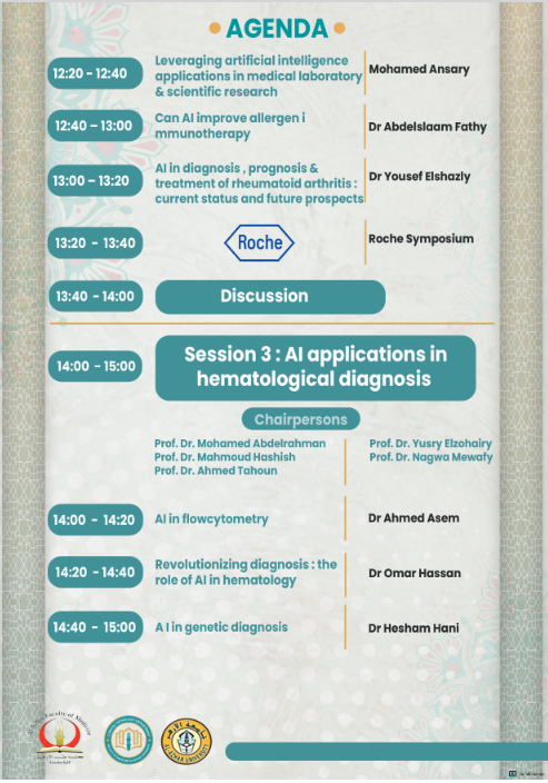 The 19th Annual Conference titled "Artificial Intelligence and Laboratory Medicine," organized by the Clinical Pathology Department of the Faculty of Medicine for Boys at Al-Azhar University, focused on the integration and impact of artificial intelligence (AI) in medical laboratory practices and scientific research. The event featured prominent speakers and experts in the field, sharing insights and advancements in AI applications.