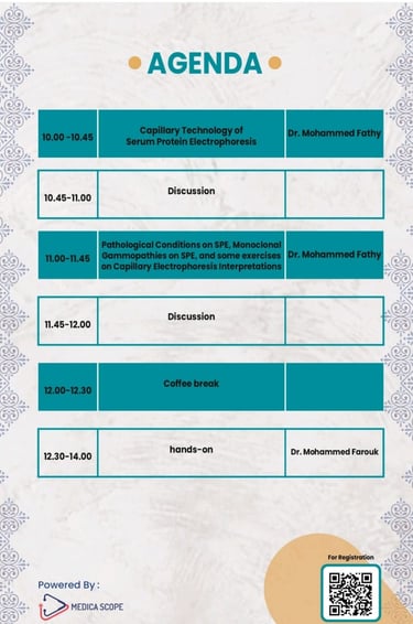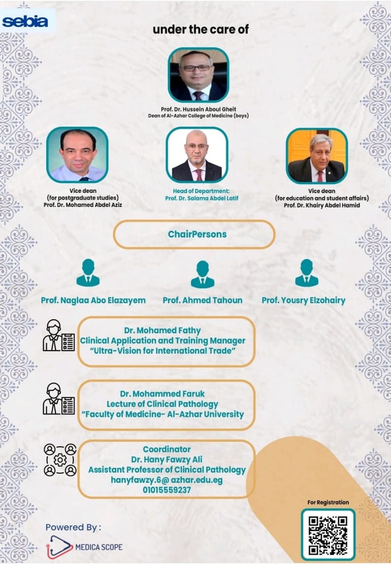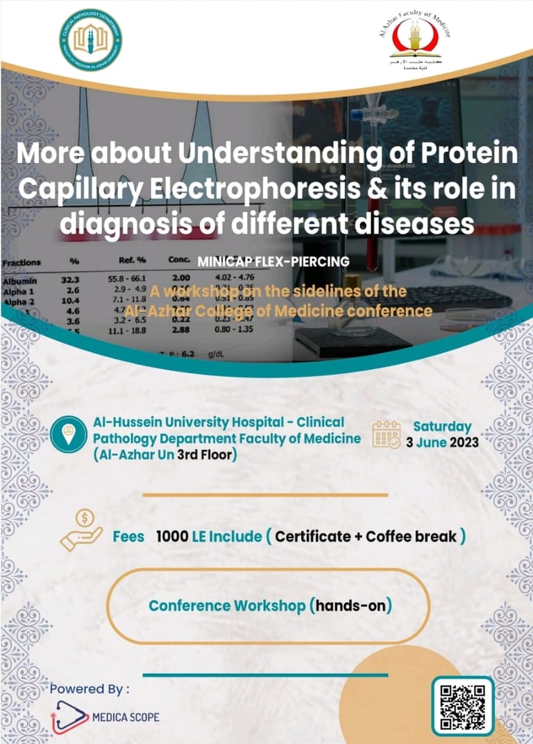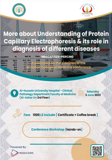 سوف يعقد إن شاء الله فعاليات ورشة عمل يوم السبت الموافق 3/6/2023 بعنوان المزيد عن فهم بروتين الشعيرات الكهربائية, دورة فى تشخيص الأمراض المختلفة على هامش مؤتمر الكلية المنعقد فى 10,11/6/2023
